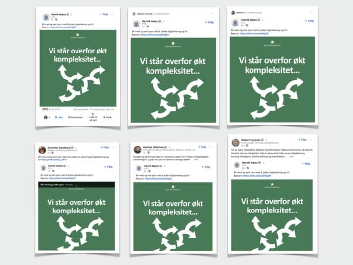 Annonseringen kombinerer sosiale medier, programmatisk bannerannonsering og fagkanaler. I tillegg har vi laget en karusell som medarbeidere i teknologimiljøet i kommunen har delt i sine nettverk på LinkedIn.