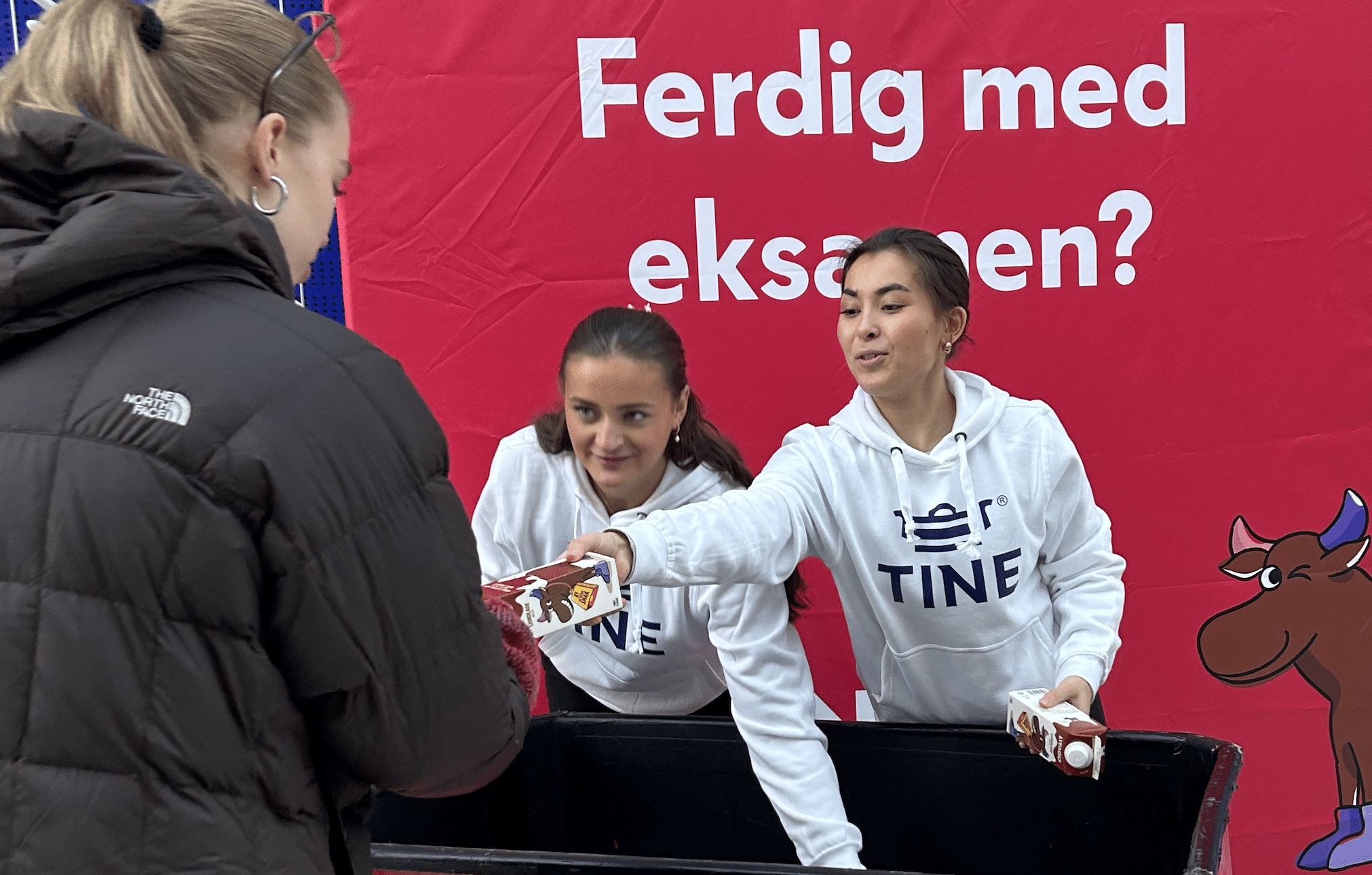 Vi dro derfor ut til NHH, NTNU, NMBU og BI på en relevant eksamensdag og delte ut YT-barer. Det gir studentene litt ekstra energi gjennom de tre timene eksamen varer.